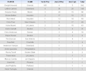 23 yaşındaki Howard, tarihte bu ödülü kazanan en genç oyuncu olurken, oylamada LeBron James ikinci, Dwyane Wade de üçüncü sırada yer aldı.
